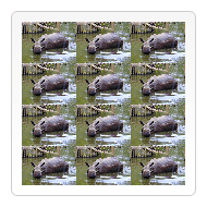 在这个例子里面我用到上面已经用过的犀牛图像,不过这次我要给犀牛头做个切片特写,然后合成到一个相框里面去。相框带有阴影效果,是一个以 24-bit PNG 格式保存的图像。因为 24-bit PNG 图像带有一个完整的 8-bit alpha 通道,与 GIF 和 8-bit PNG 不同,我可以将它放成背景而不必担心底色的问题。