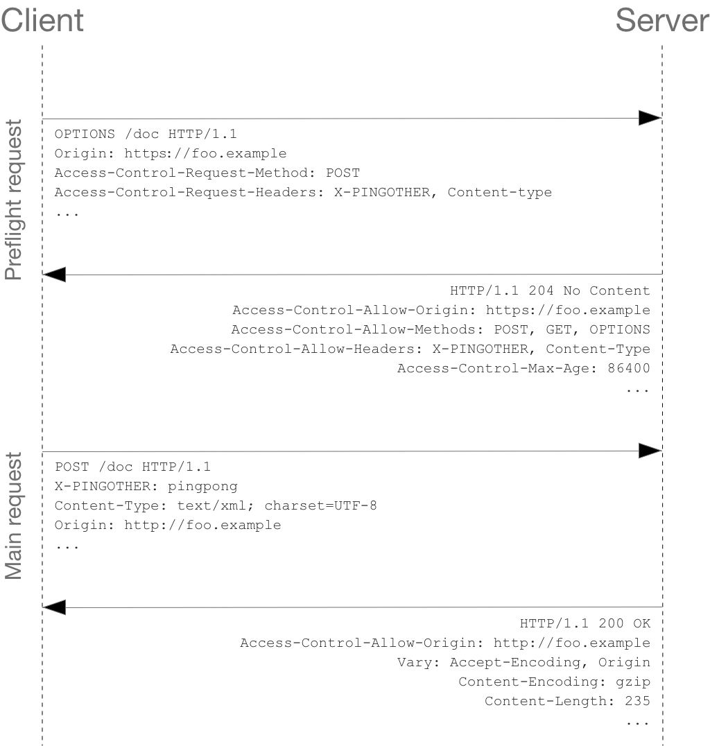 此操作实行了客户端和服务器之间的简单交换,使用 CORS 标头字段来处理权限: